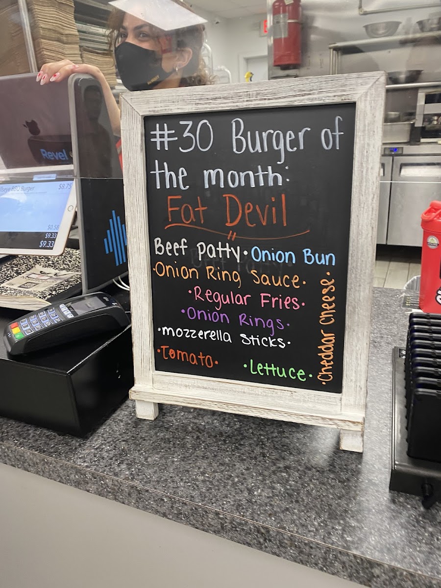 7oz. Angus beef and spicy chili, cheddar cheese & crispy onions straws on a Miami onion bun with chipotle mayo and sour cream on the side