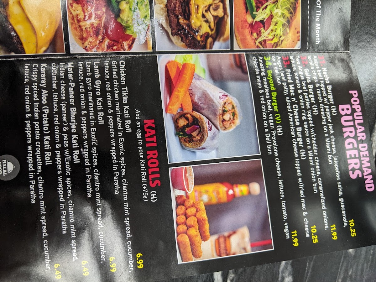 A blend of fresh ground lamb and fresh ground turkey, feta cheese, grilled gyro strips, lettuce, tomato, red onion and tzatziki sauce on Miami onion bun